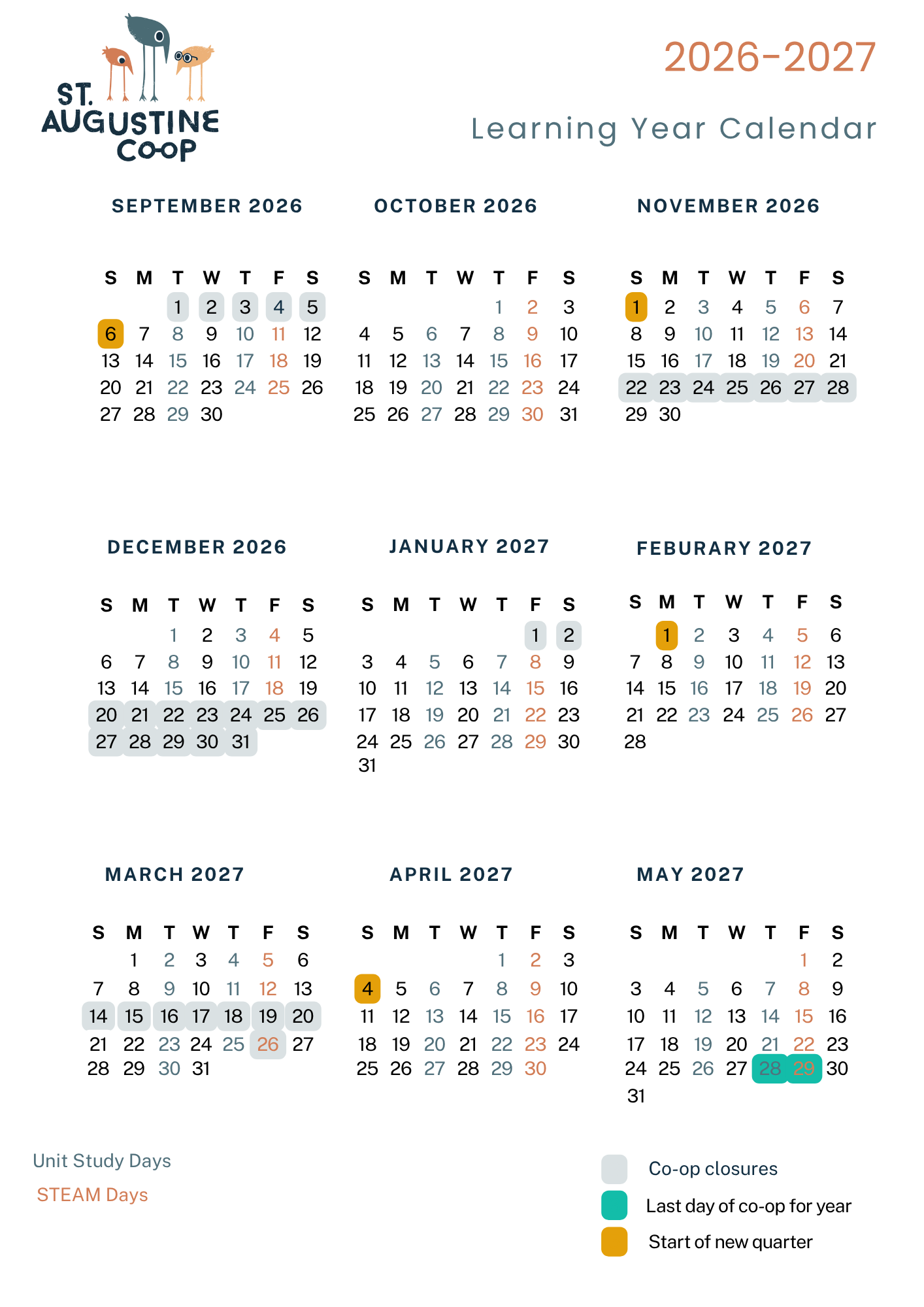 Download the 2026–2027 Co-op Calendar (PDF). Looking for the current year? The 2025–2026 calendar is available here.